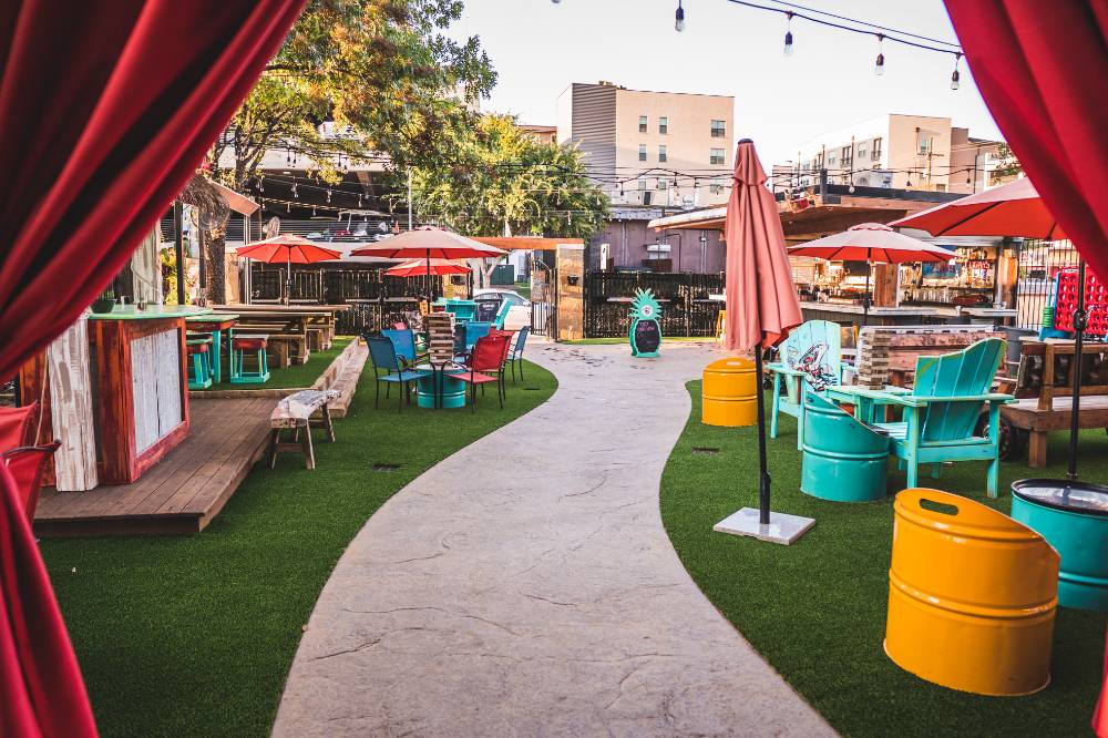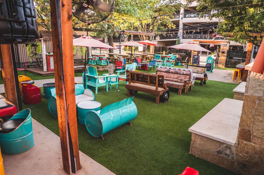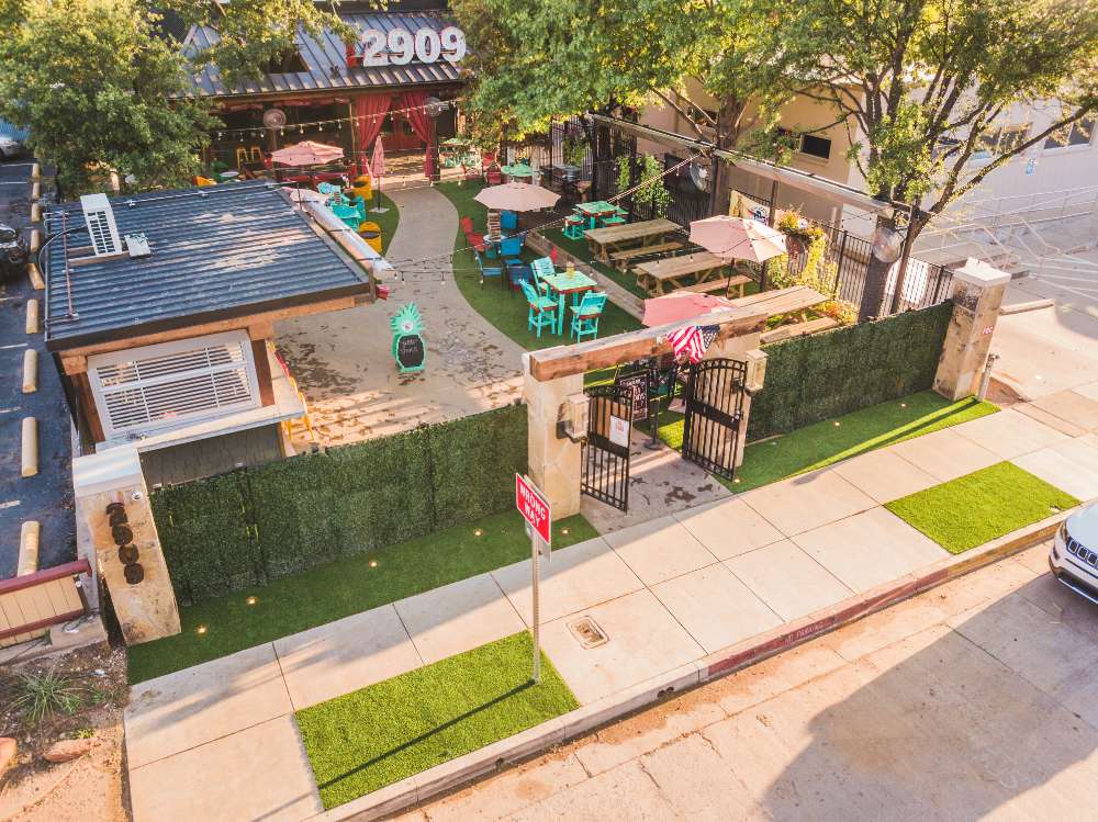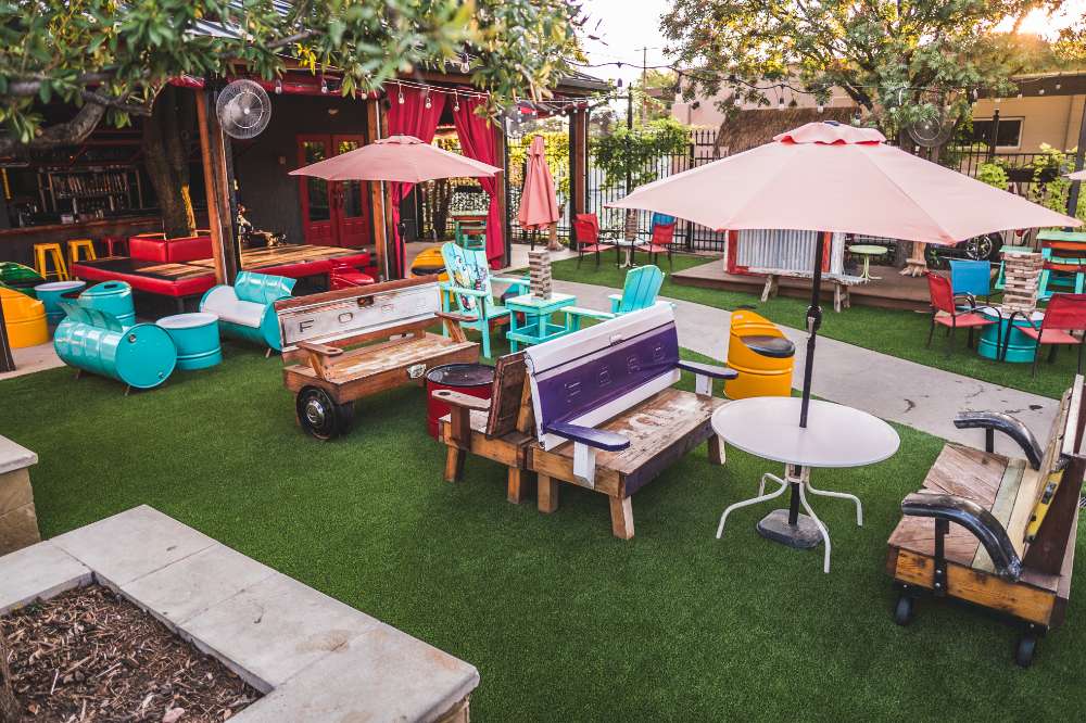 This was a fun restaurant that wanted to focus on their outdoor space for year-round dining and for a bar space. The synthetic turf will allow for safer flat surfaces and ensure that it will be a great looking space day or night, winter or summer for the restaurant and bar areas.