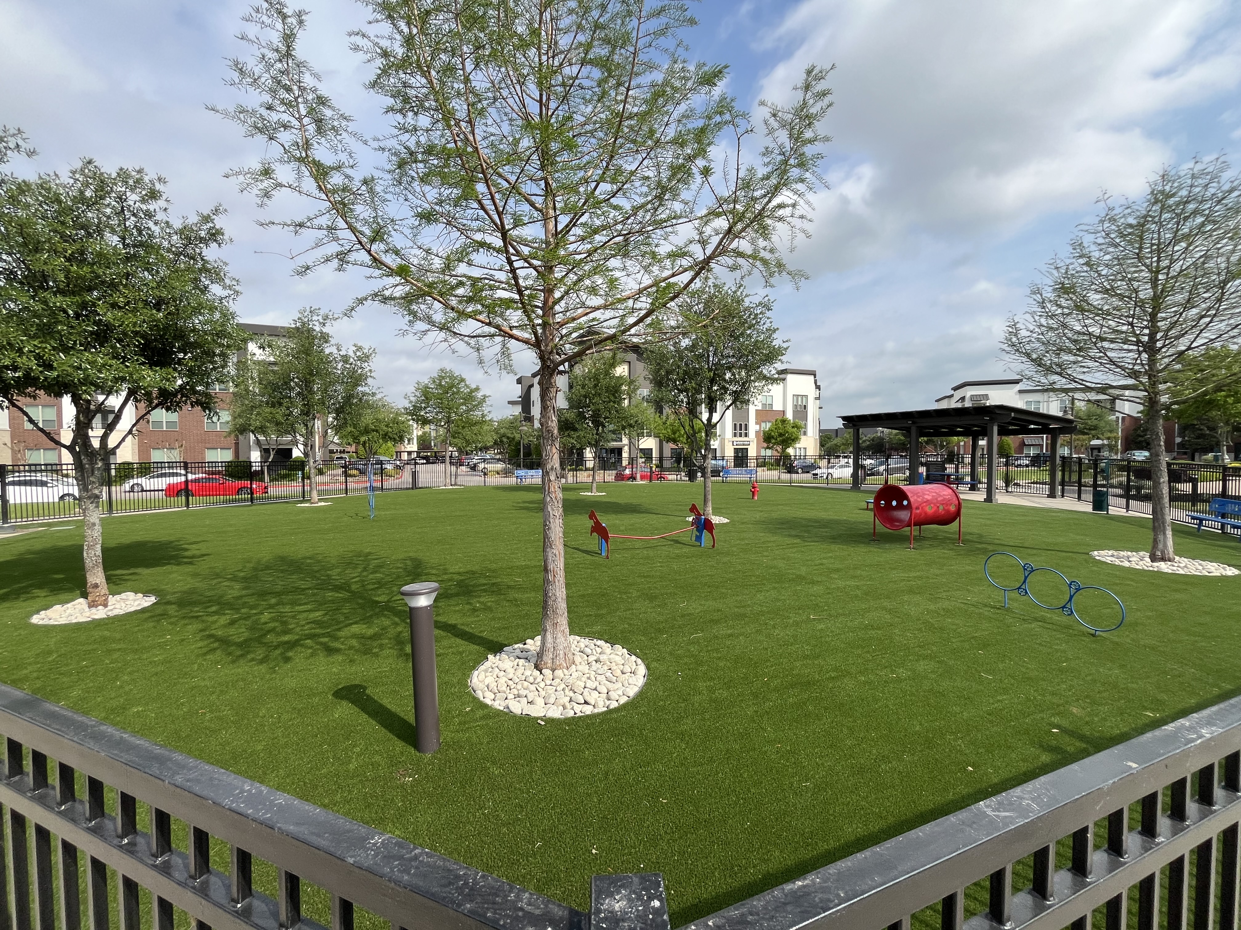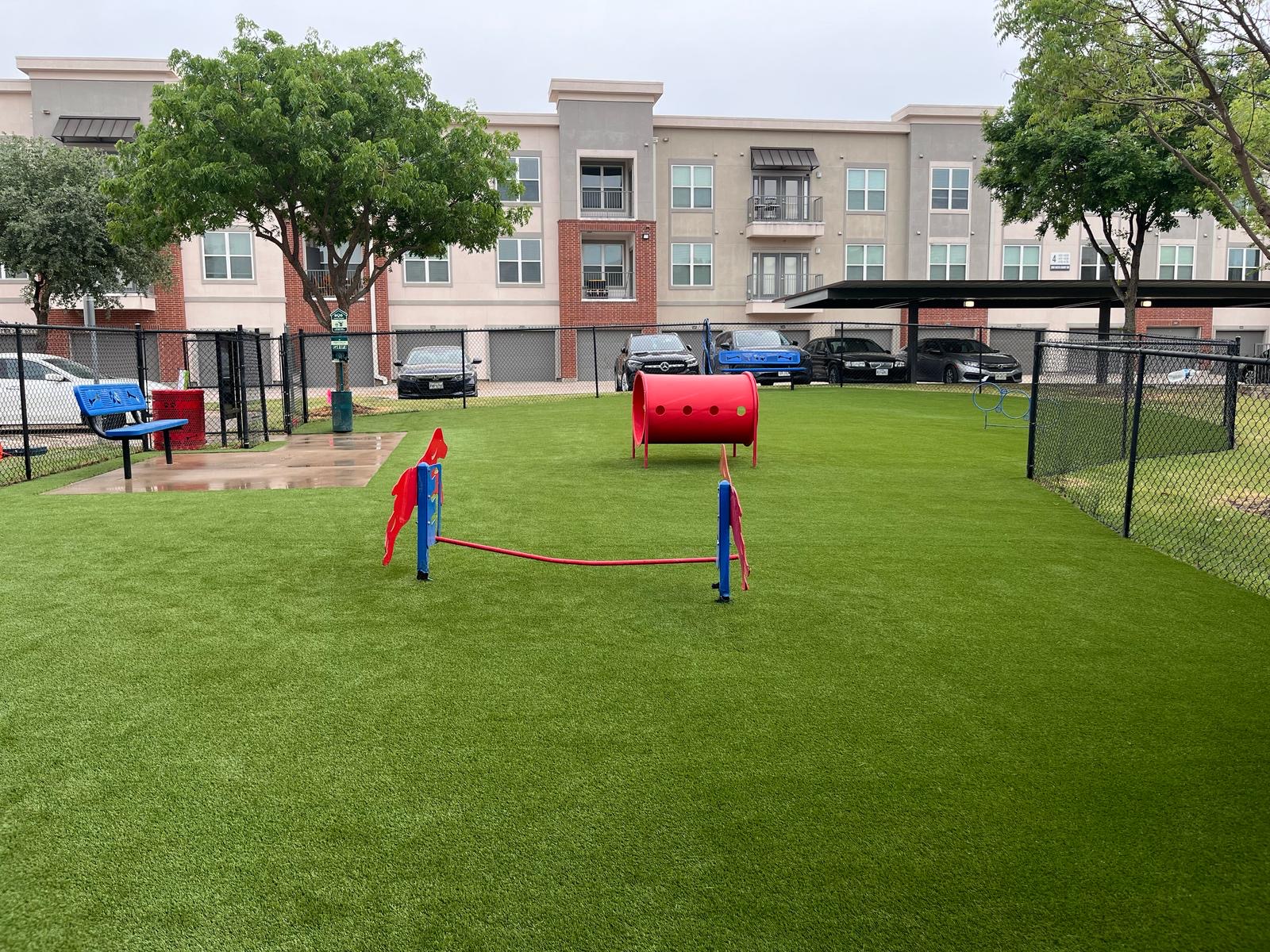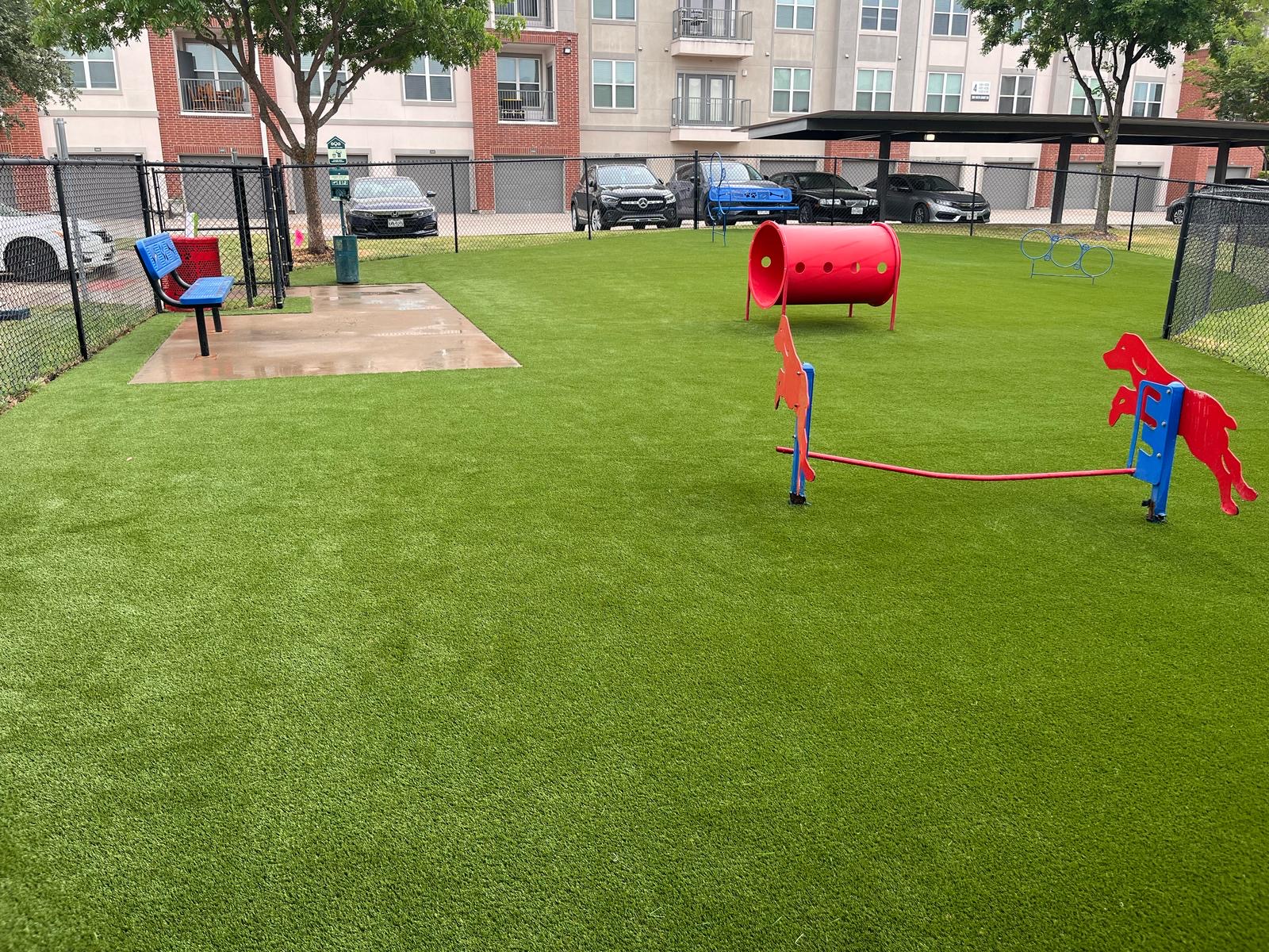 We installed two dog parks of different sizes for this apartment complex. We used Pet Turf with super-flow backing to help with urine smell, ensuring a fresh smell year-round.