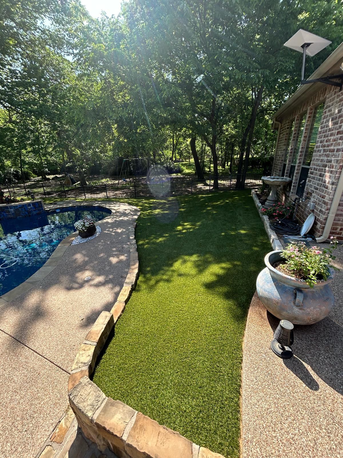 We installed All Seasons Turf in their backyard and around their pool. This will allow them to have a fresh, green backyard to look at year-around, and ensure they won't have any more soggy, muddy areas around their pool come party time.
