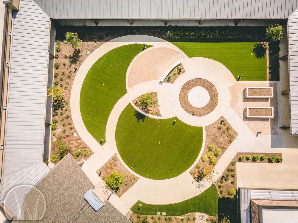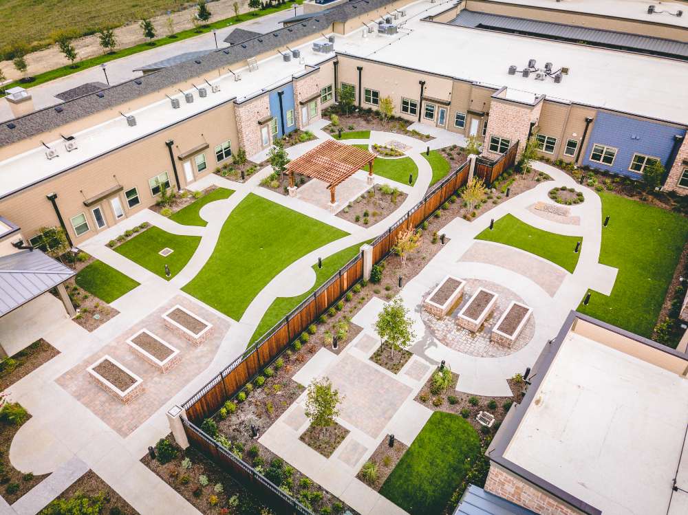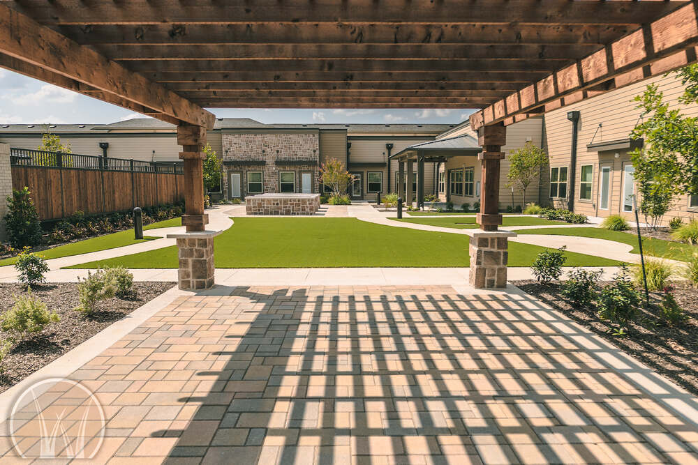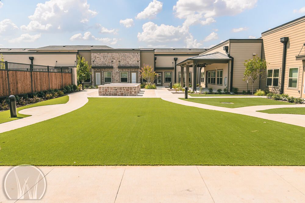 This retirement community wanted turf so that their residents could enjoy beign outside, no matter their mobility. We installed turf, but kept concrete walkways for accessibility, as well as leaving flowerbed areas for seasonal plants to be grown.