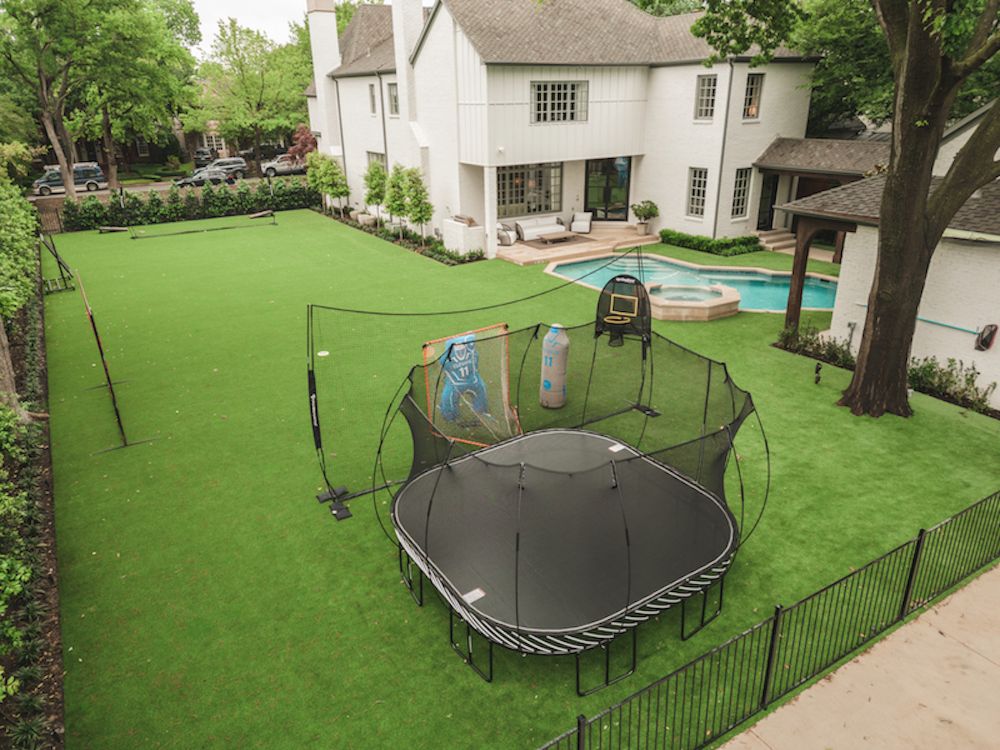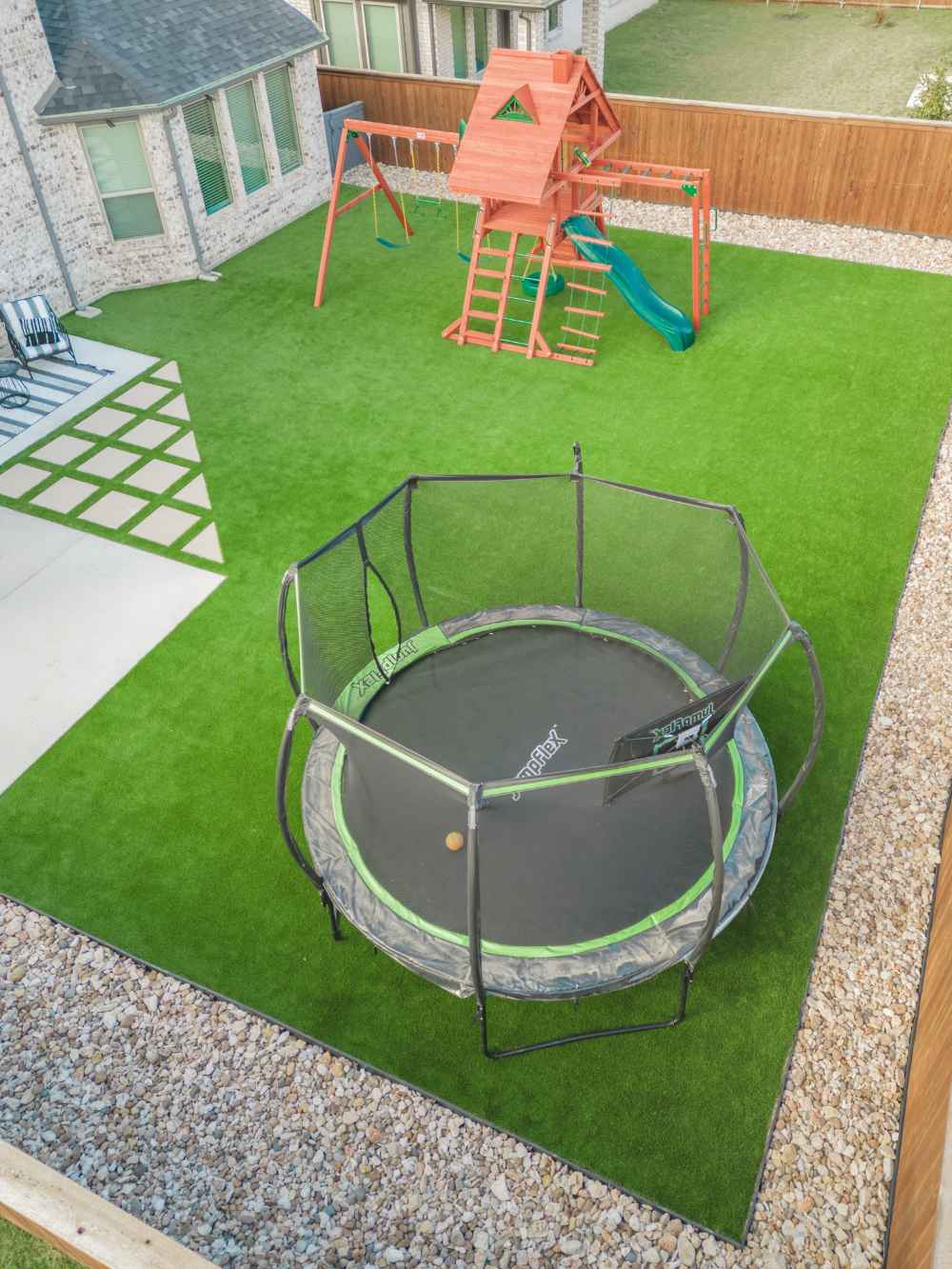 This client wanted turf in their backyard so that their kids had a clean and safe space to play. They had a small playground installed and opted to have the trampoline installed in the ground to reduce the risk of injuries. We were able to do all t...